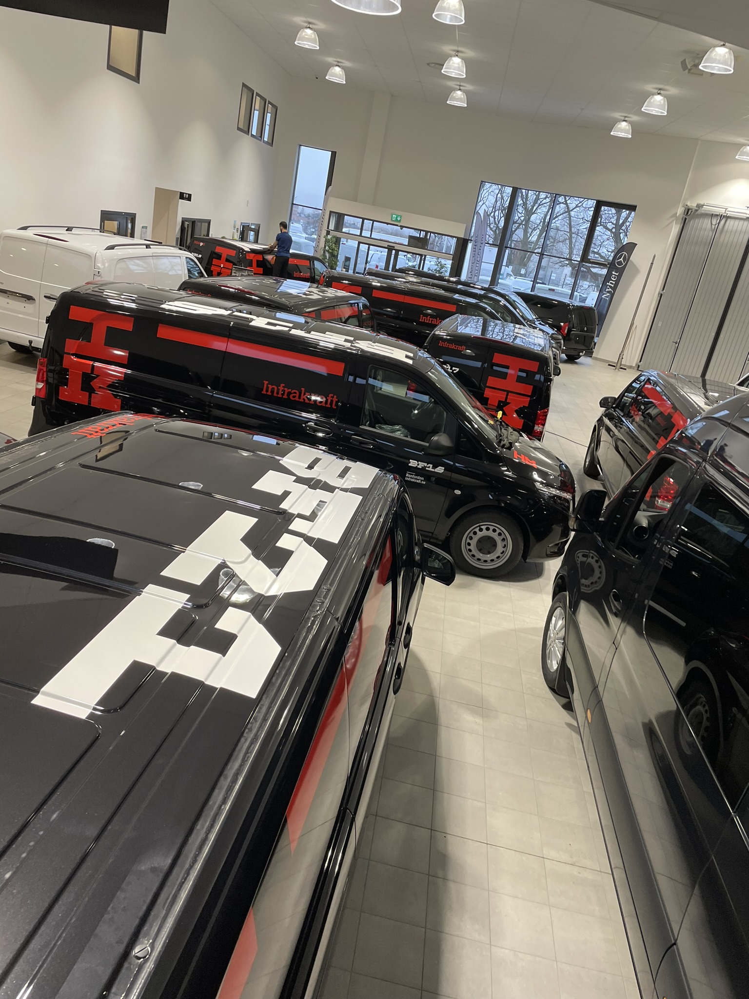 Vi använder hållbara folier och tryck som tål väder, tvätt och slitage, oavsett om du vill ha en helwrap, delvis foliering eller dekor med logotyp och kontaktuppgifter.